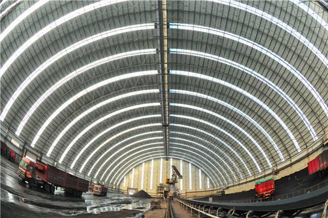 堆场料场封闭式主体结构为新型的钢塔城网架结构,维修结构为塔城钢结构塔城不锈钢板和纤维增强塑料灯具,其外形以塔城网架式和平板为主,连接柱塔城施工自由,设置喷雾自动喷水系统,从而可以实现棚内所有物料的覆盖,减少物料在运输过程中的损耗,起到防尘的作用,减少工厂关闭后的二氧化硫排放量,50mg/m3颗粒排放量小于10mg/m3,非常适合低能耗。低闭库自动感应反应对库存轮胎进行清洁,确保轮胎不受道路污染;封闭的储存区可从源头控制粉尘污染,控制无序排放。
